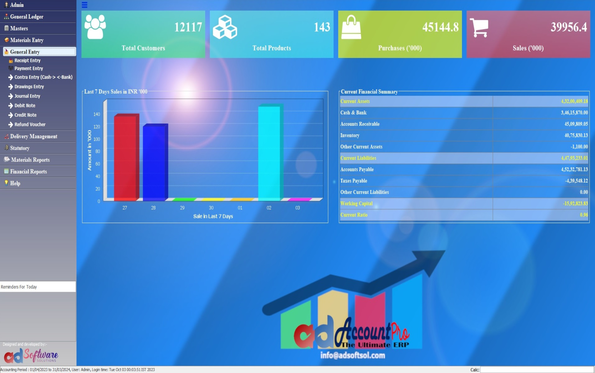 In the fast-paced world of small to large organizations and manufacturers, having a robust Enterprise Resource Planning (ERP) system is critical. ADAccountPro® is the ultimate ERP program designed to streamline your accounting, production management, inventory, and payroll processes. With a strong focus on adhering to Indian accounting standards and generating statutory reports, GST returns data, ADAccountPro® is your trusted partner for efficient business operations.